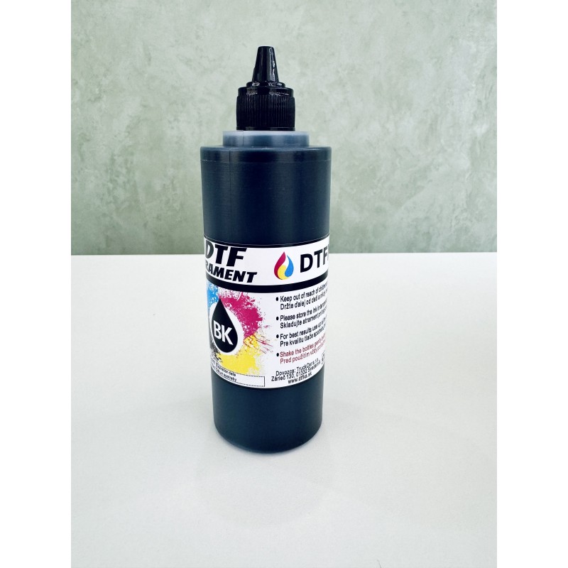 Špeciálne na mieru vyrobený atrament určený výhradne na potlač DTF tlač na špeciálne transferové fólie a následnú termo-transférovú potlač textilu.